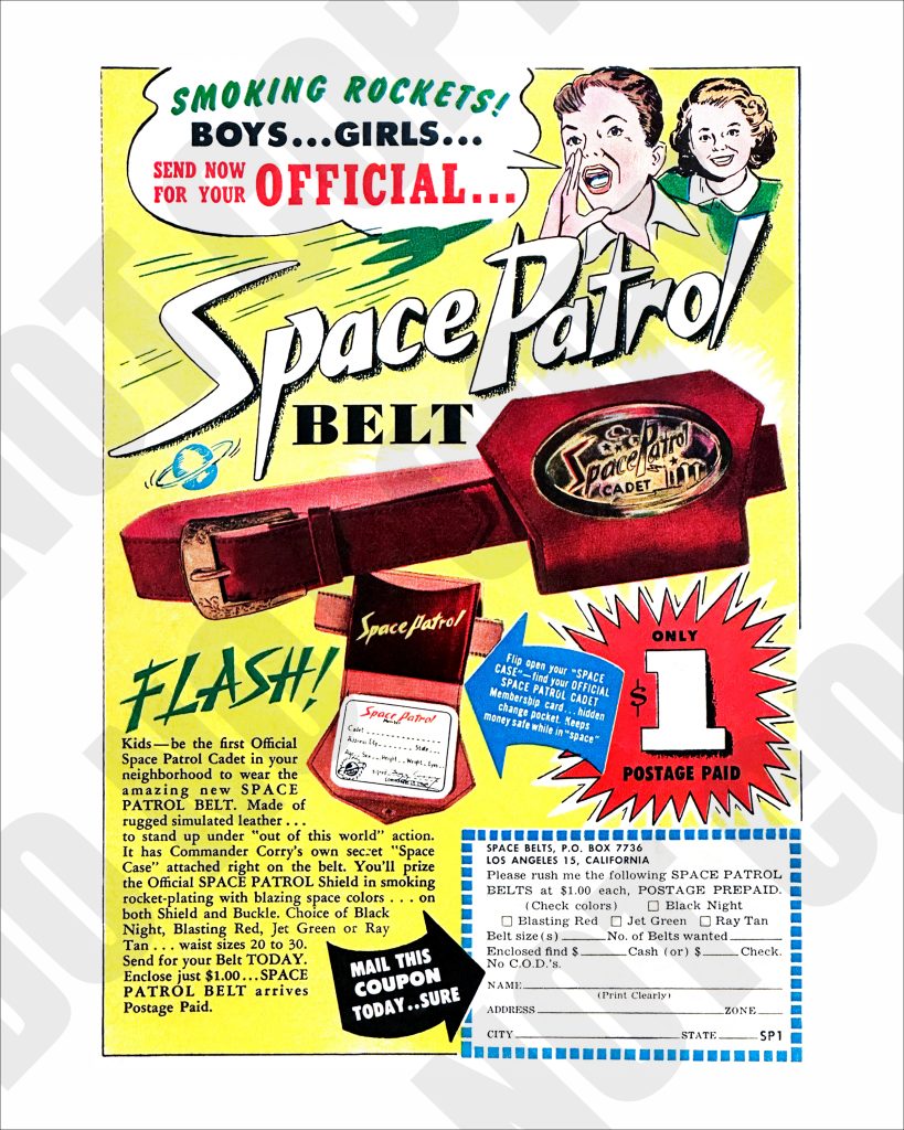 Relive the fun of the 1950s with this vibrant reproduction 8×10 photo featuring a vintage magazine advertisement for Space Patrol TV Series Belt Promo Ad. A nostalgic piece of 1950s history, perfect for collectors of retro ads, memorabilia, or 50s Sci-Fi pop culture fans.
