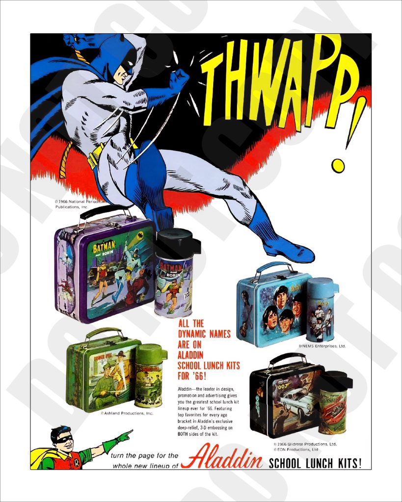 1965 Aladdin Salesman Sample Ad For Batman Beatles Lunchbox Thermos Kits Photo