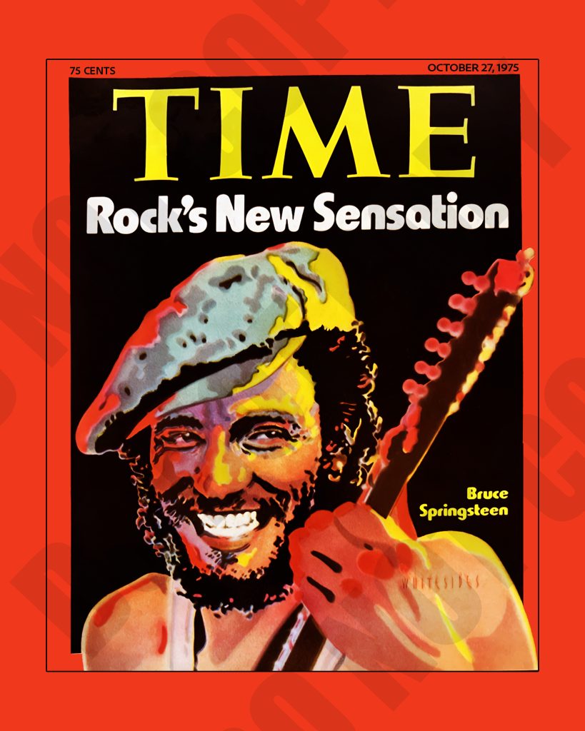 For the collector and fan of rock history — this reproduction replicates the iconic cover of Time Magazine dated October 27 1975, which featured Bruce Springsteen at a pivotal moment in his career. In the weeks following the release of his breakthrough album Born to Run (August 1975).